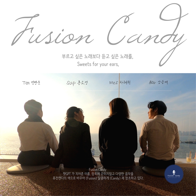 ‘퓨전’과 ‘캔디’를 합성한 팀 이름이 재미있다. 다양한 음악 장르를 융합해 대중에게 친숙하면서도 독창적인 달콤 사운드를 선보이겠다는 의미를 담았다. 젊은 음악가들의 모임답게 챗GPT가 지어준 이름이란다. ‘부르고 싶은 노래보다 듣고 싶은 노래를’이라는 그들의 모토에 절로 고개가 끄덕여진다.