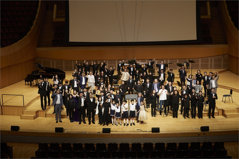 ‘뷰티플마인드 가을음악회’의 모든 출연자와 제작진이 공연을 마친 뒤 기념촬영을 하고 있다. ⓒ뷰티플마인드 제공