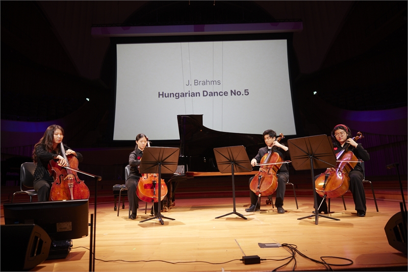 김민주(퍼스트)는 조홍희(세컨드), 서윤직(서드), 박유림(포스)과 함께 첼로앙상블을 선사했다. 마이클 키비의 ‘Mellow Cellos Tango’에서는 서로 대화하듯 주고받는 빠르고 강렬한 리듬이 완벽하게 조화를 이루며 네 사람의 케미를 돋보이게 했다. 브람스의 ‘헝가리 무곡 5번’은 빠르고 활기찬 도입부와 느리고 서정적인 중간부가 교차하며 강렬한 대비를 이뤘다.