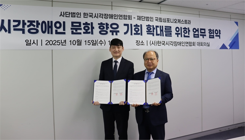국립심포니오케스트라가 사단법인 한국시각장애인연합회(이하 ‘한시련’)과 문화예술의 공공성 실현 및 시각장애인의 문화 접근성 향상을 위해 업무협약을 체결했다.