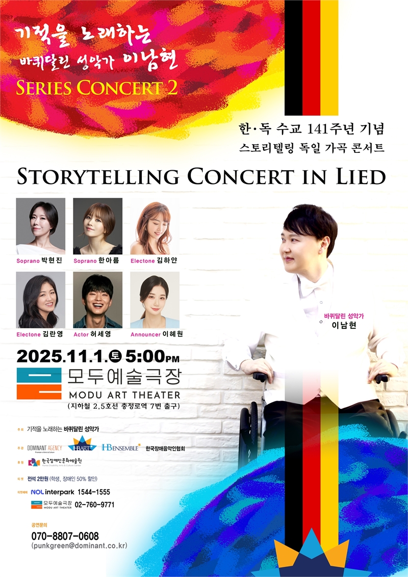 ‘스토리텔링 독일 가곡 콘서트’는 단순히 독일 가곡(리트)을 나열하는 무대가 아니다. 이남현은 자신의 인생, 특히 사고 직후 겪었던 고난과 시련의 시간부터 불편한 몸에도 한계를 극복하며 최초의 전신마비 성악가로 도전하는 과정을 음악과 극을 연결 지어 스토리로 풀어낸다.