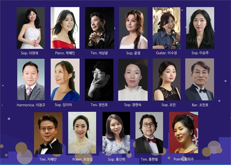 소프라노 이영재·윤정·이승주·임미라·정현숙·조민·홍신애, 테너 석상광·정연호·지혜만·홍현필, 바리톤 조민호는 목혜민의 피아노 반주에 맞춰 노래를 부른다. 이수정은 기타를, 이창규는 하모니카를 연주한다. 그리고 최정심과 황희주는 시를 낭독한다.