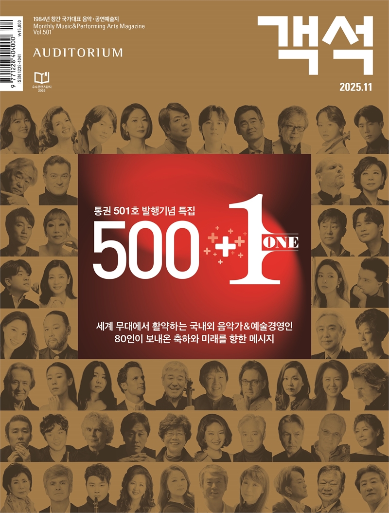 이번 501호는 그간의 여정을 총망라하는 동시에, 세계무대에서 활약하는 국내외 음악가·예술경영인 80인의 축하 메시지를 담아 한국 공연예술의 현재와 미래를 조망한다.