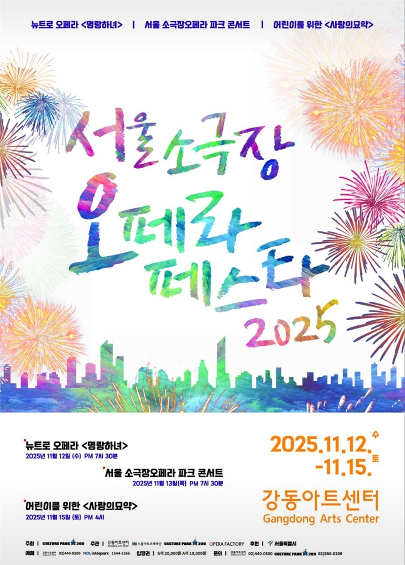 오는 11월 12일부터 15일까지 강동아트센터 소극장 드림에서 펼쳐지는 ‘2025 서울 소극장 오페라페스타’는 컬쳐파크209 주최, 강동아트센터·노블아트오페라단·오페라팩토리·컬쳐파크209 주관, 서울특별시 후원으로 개최된다.