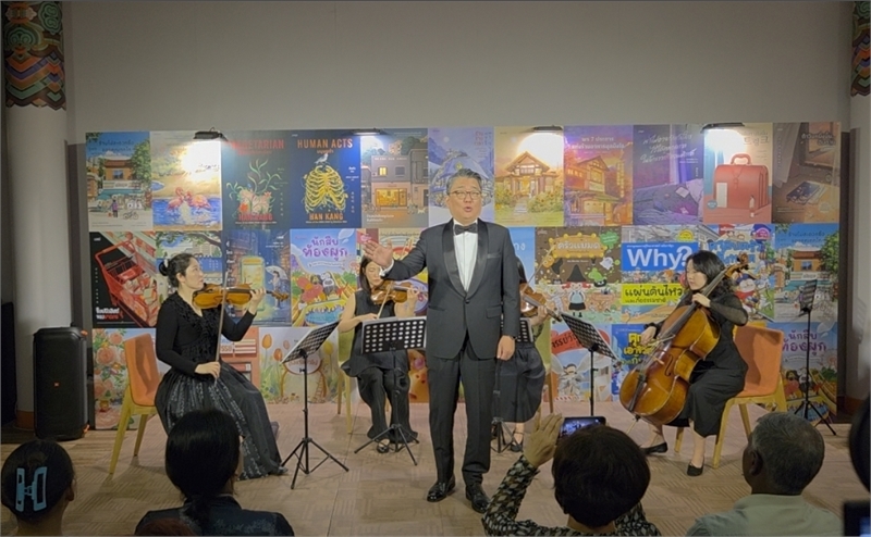 주태국 한국대사관의 박용민 대사는 바이올리니스트 박소현·김미현, 비올리스트 최지은, 첼리스트 박가경의 현악사중주 반주에 맞춰 가곡 ‘보리밭’을 직접 노래해 모두를 감탄하게 만들었다.