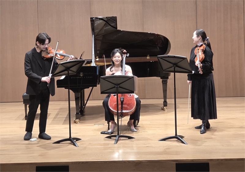 1부 첫 곡으로 하이든의 ‘메아리’를 연주했다. 두 팀의 현악 삼중주(임성윤·유연주·박가경/강민송·박소현·박다인)가 각기 다른 곳에서 연주해 실제 메아리처럼 소리가 들리는 효과를 연출했다.