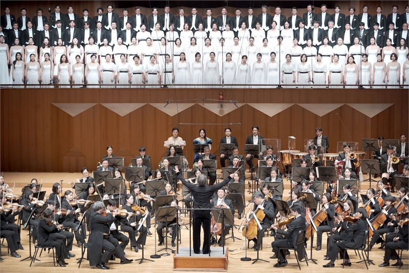27일 예술의전당 콘서트홀에서 열린 제821회 정기연주회 ‘합창’은 소프라노 최지은, 메조소프라노 양송미, 테너 손지훈, 바리톤 김기훈이 협연자로 나섰다. 또한 고양시립합창단, 서울모테트합창단, 안양시립합창단이 힘을 합쳐 웅대한 울림을 완성했다.