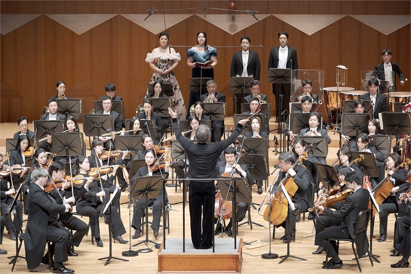 정명훈이 지휘하는 KBS교향악단이 베토벤 교향곡 9번 ‘합창’을 연주하고 있다. ⓒKBS교향악단 제공